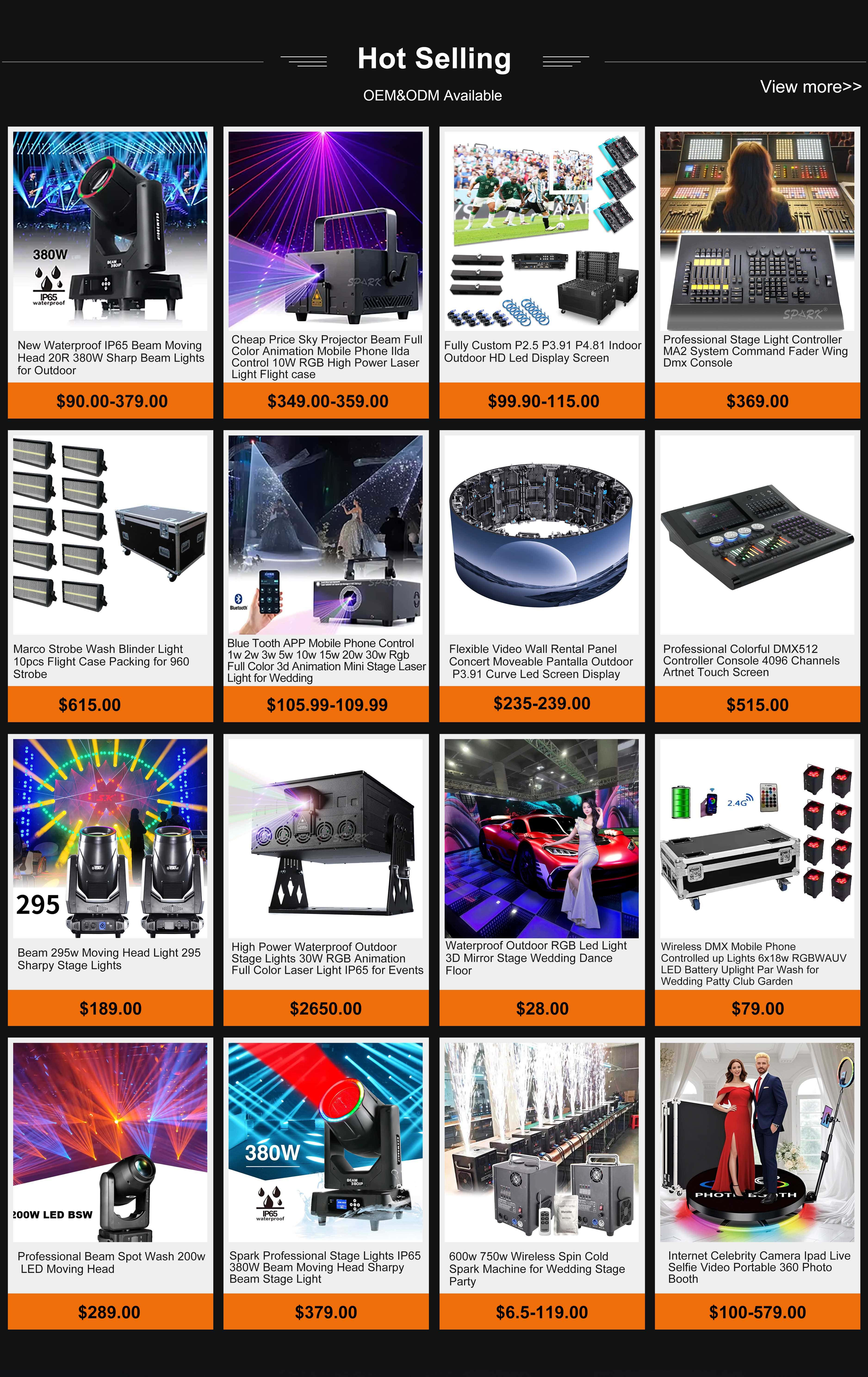 Guangdong Spark stage equipment Co., Ltd, is a professional stage lighting manufacturer, specialized in R & D, production, sales of stage lights. It has a production area of over 30,000 square meters, more than 9 production lines and over 200 employees, including more than 30 engineers, the main products include beam moving head light, L E D moving head light, L E D effect light, L E D wash light, L E D strobe light, L E D par light, laser light, L E D Display and theatre lights so on. Our products export to all over the world such as Southeast Asia, Europe, North America, South America, the Middle East region and also Africa. And products got highly approval by all the abroad customers.